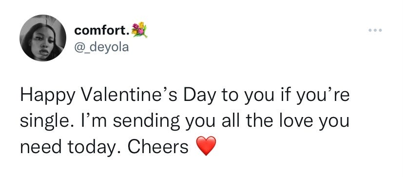 Just like every Valentine’s Day since I started this newsletter,you’re my Val and I love you. I’m sending you all the love you need and want. Cheers to a good life❤️